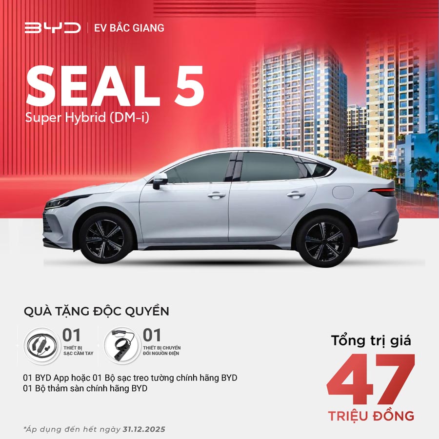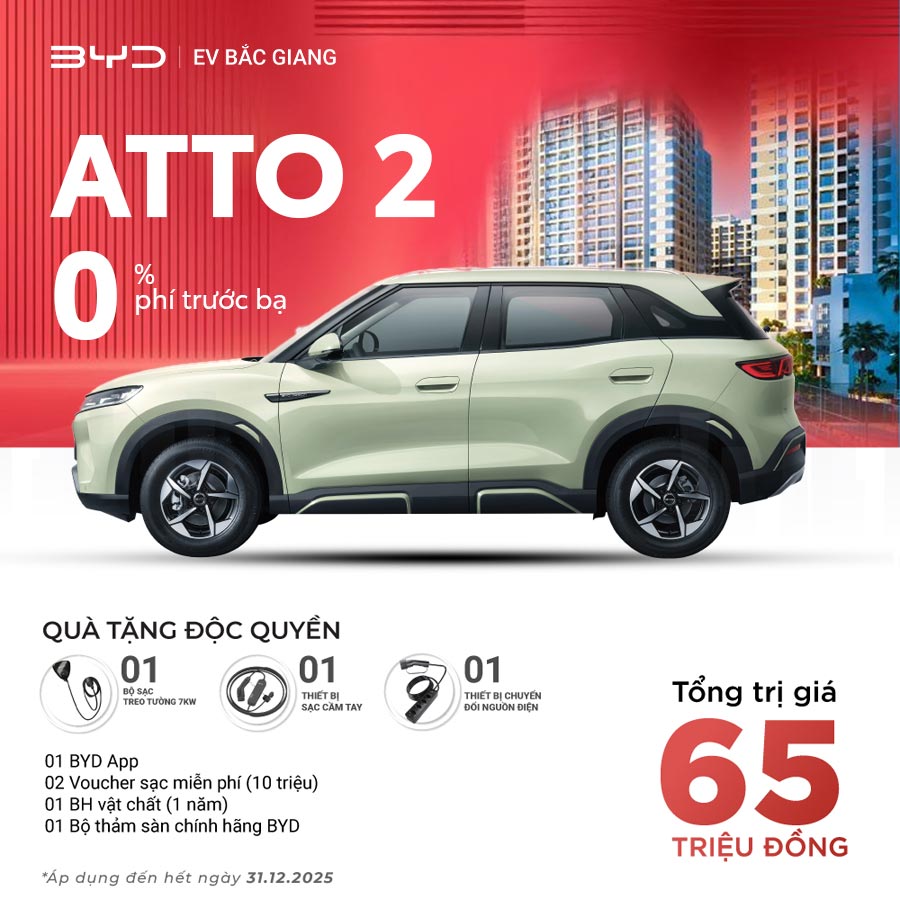 Khám phá chương trình ưu đãi “Deal Rực Rỡ – Quà Bất Ngờ” dành cho khách hàng mua xe BYD tại BYD Bắc Giang trong tháng 12/2025. Nhận quà tặng lên tới 60 triệu đồng, áp dụng cho tất cả các dòng xe BYD: Atto 3, Seal, Sealion 6, M6, Han,...