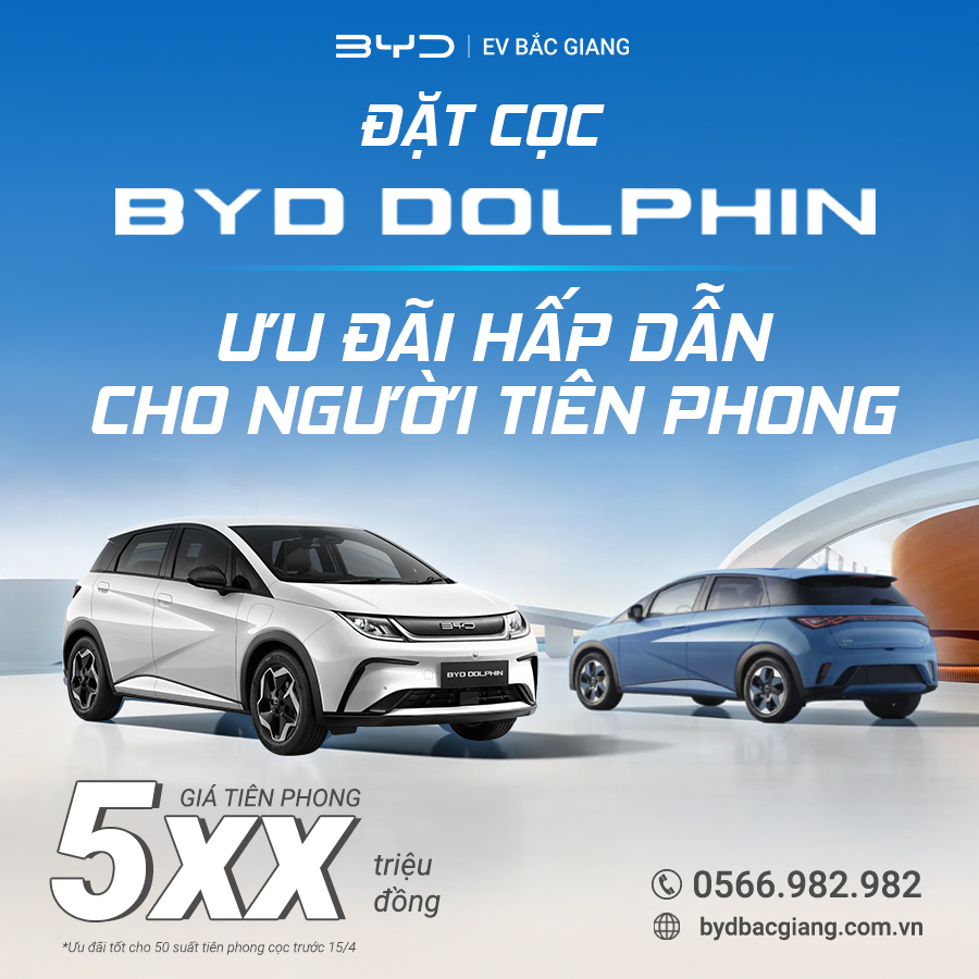BYD Dolphin 2026 sắp ra mắt tại Việt Nam với pin Blade 50,25 kWh, tầm hoạt động 435 km, nội thất rộng ngang sedan C và nhiều công nghệ thông minh. Xem chi tiết tại BYD Bắc Giang. -